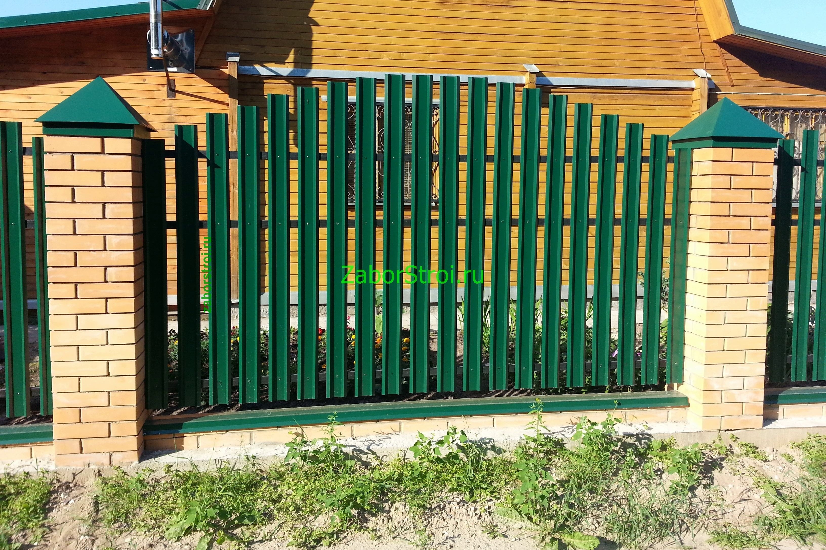 Заборы из евроштакетника с кирпичными столбами 70 метров