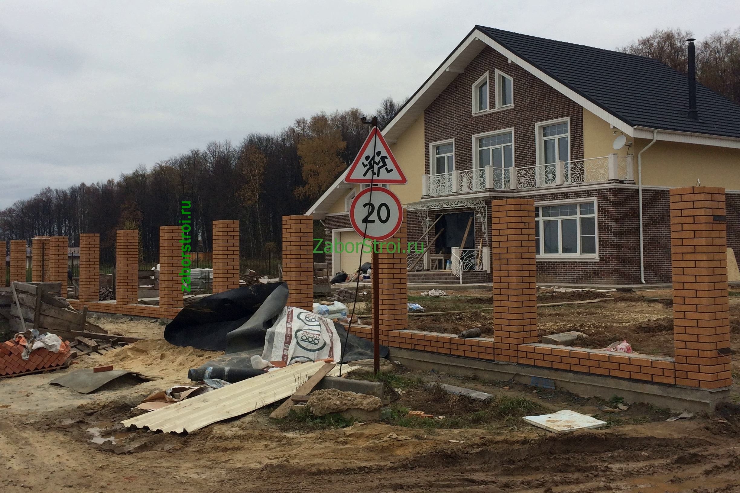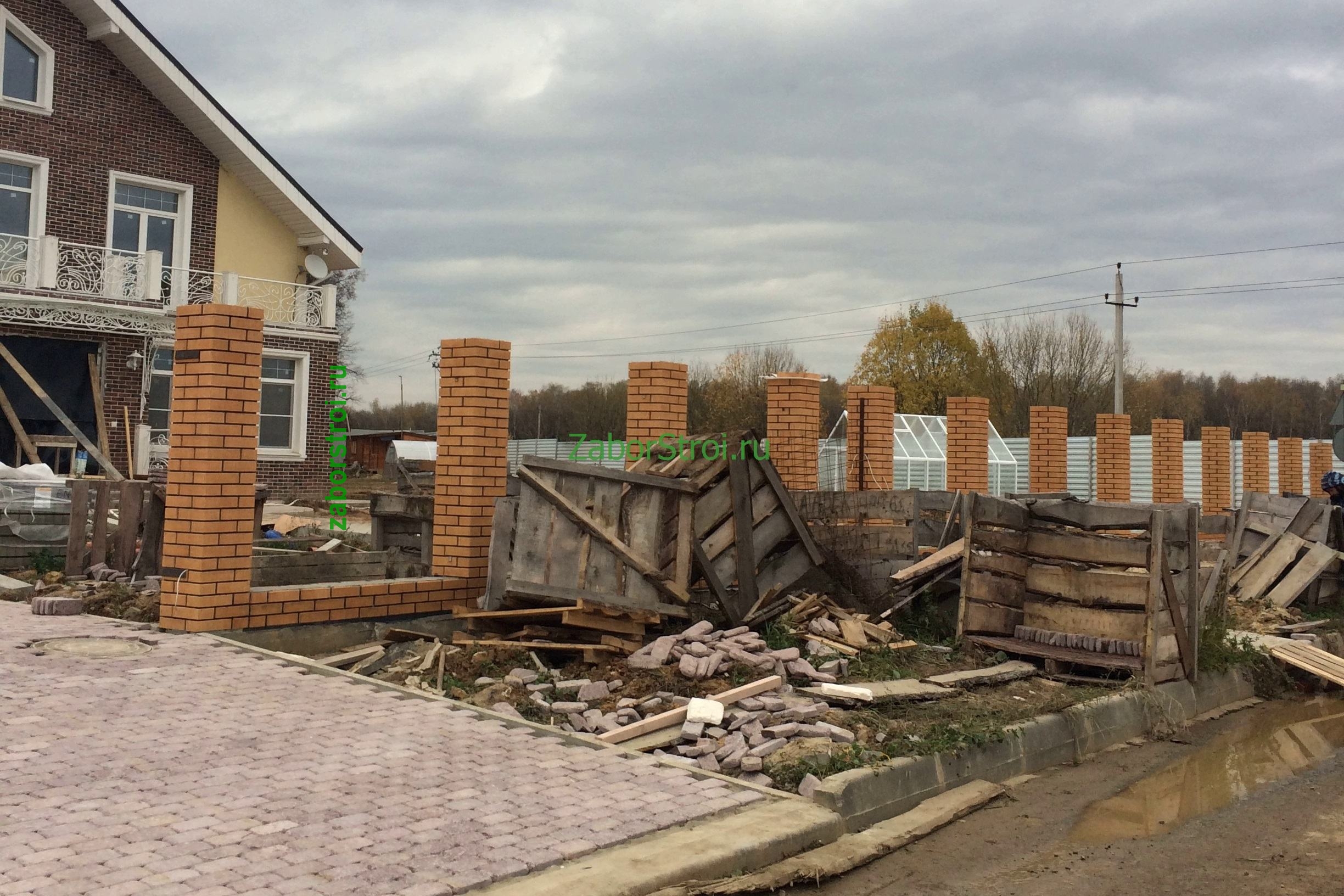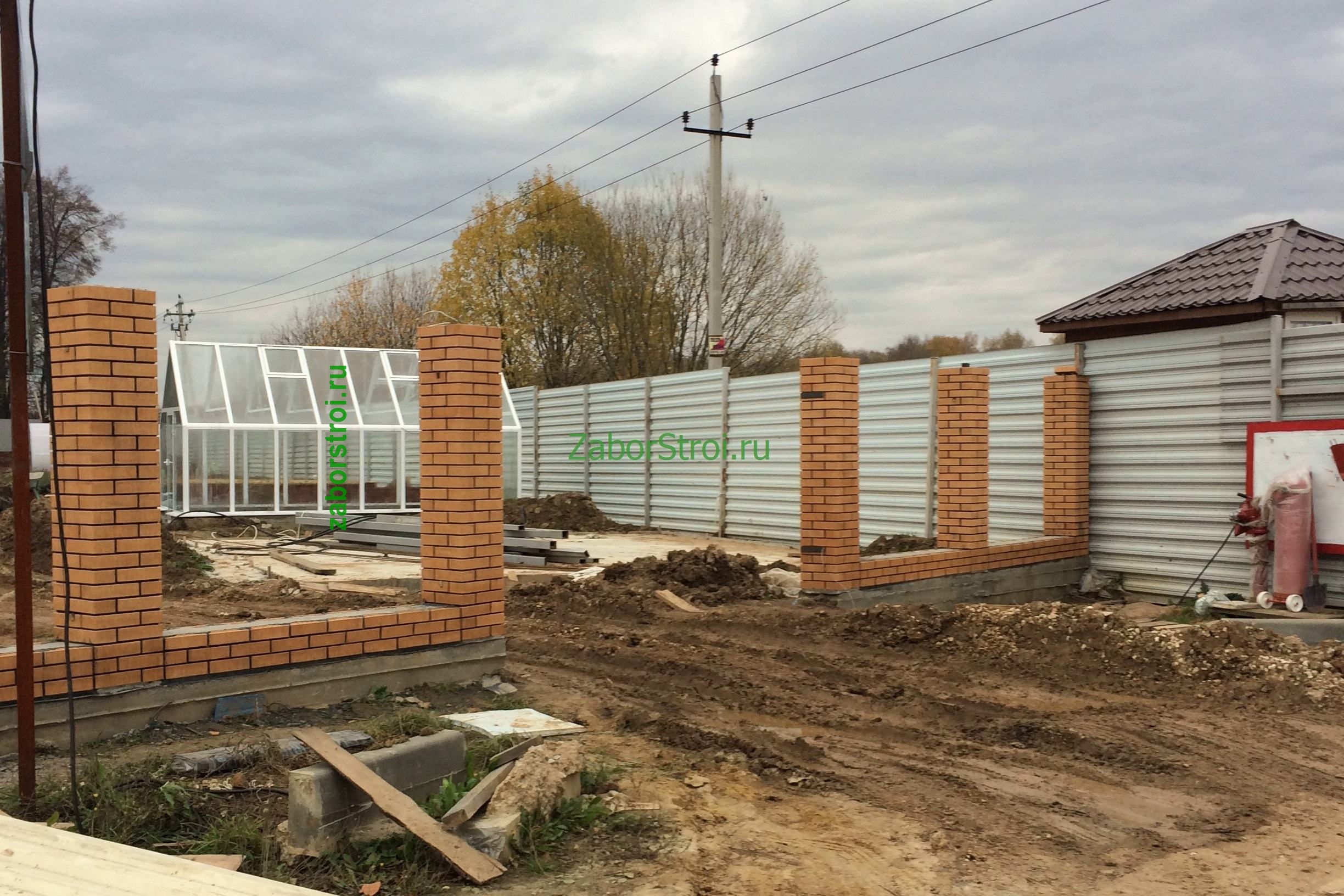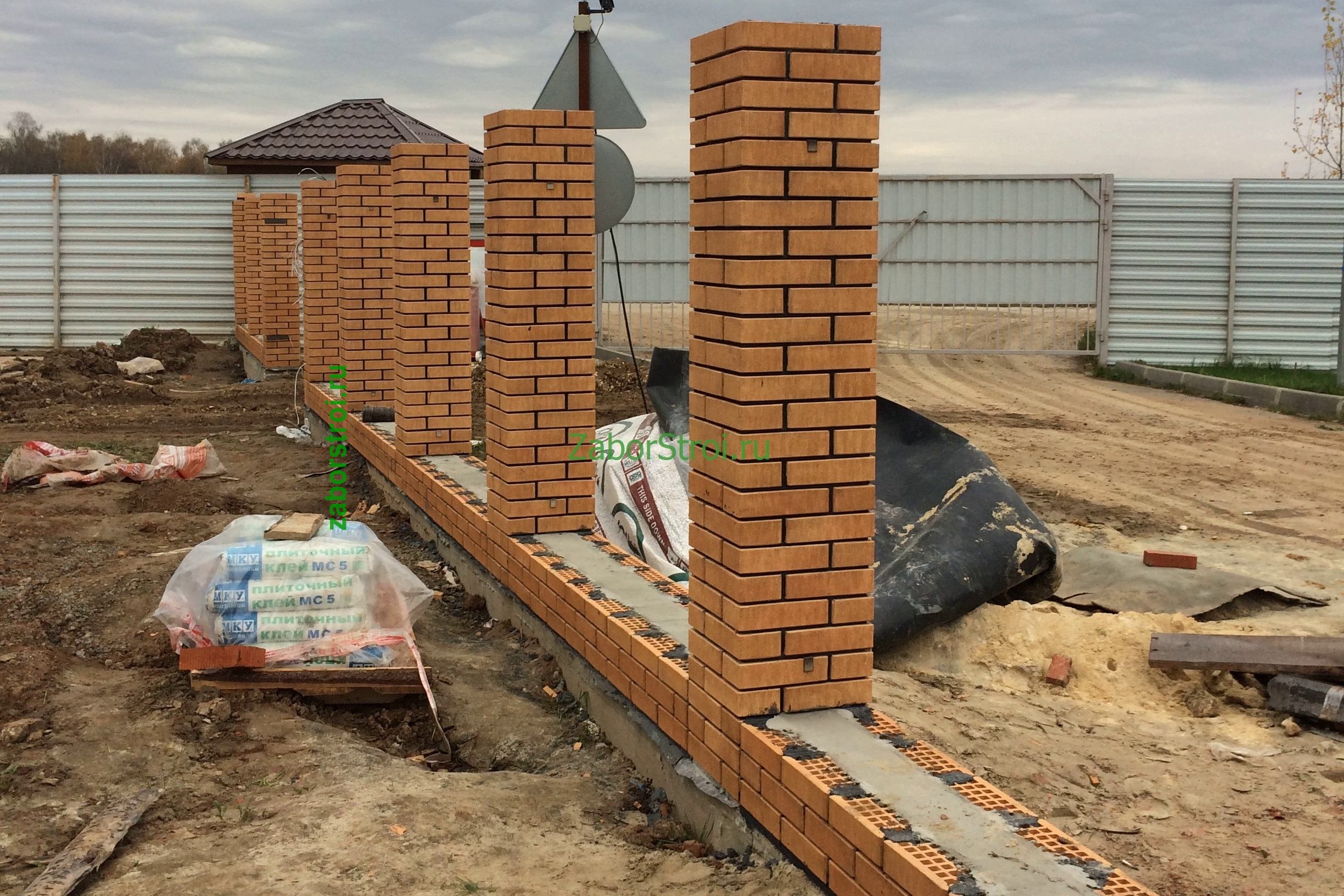Заборы из профнастила с кирпичными столбами 12 соток