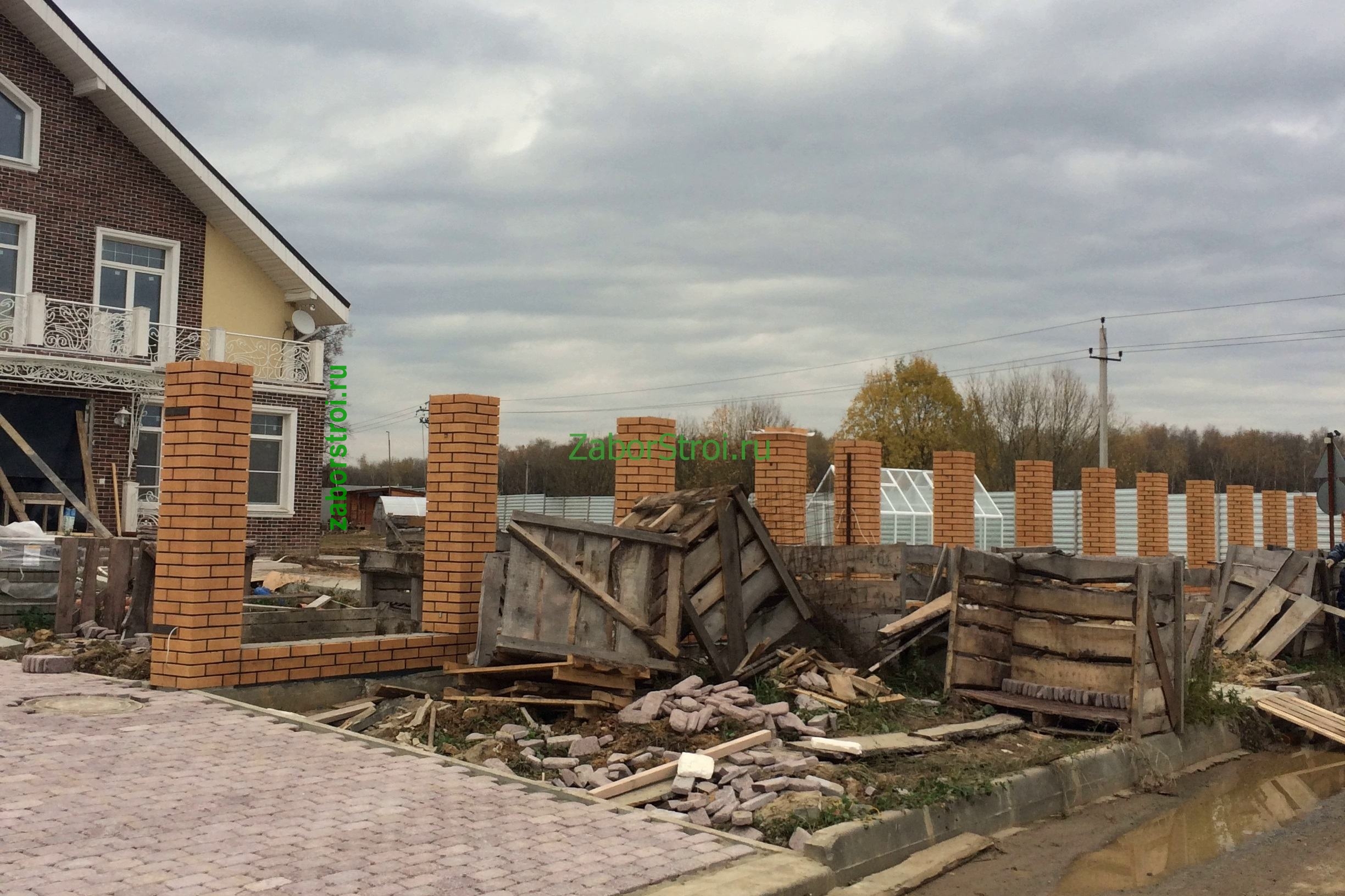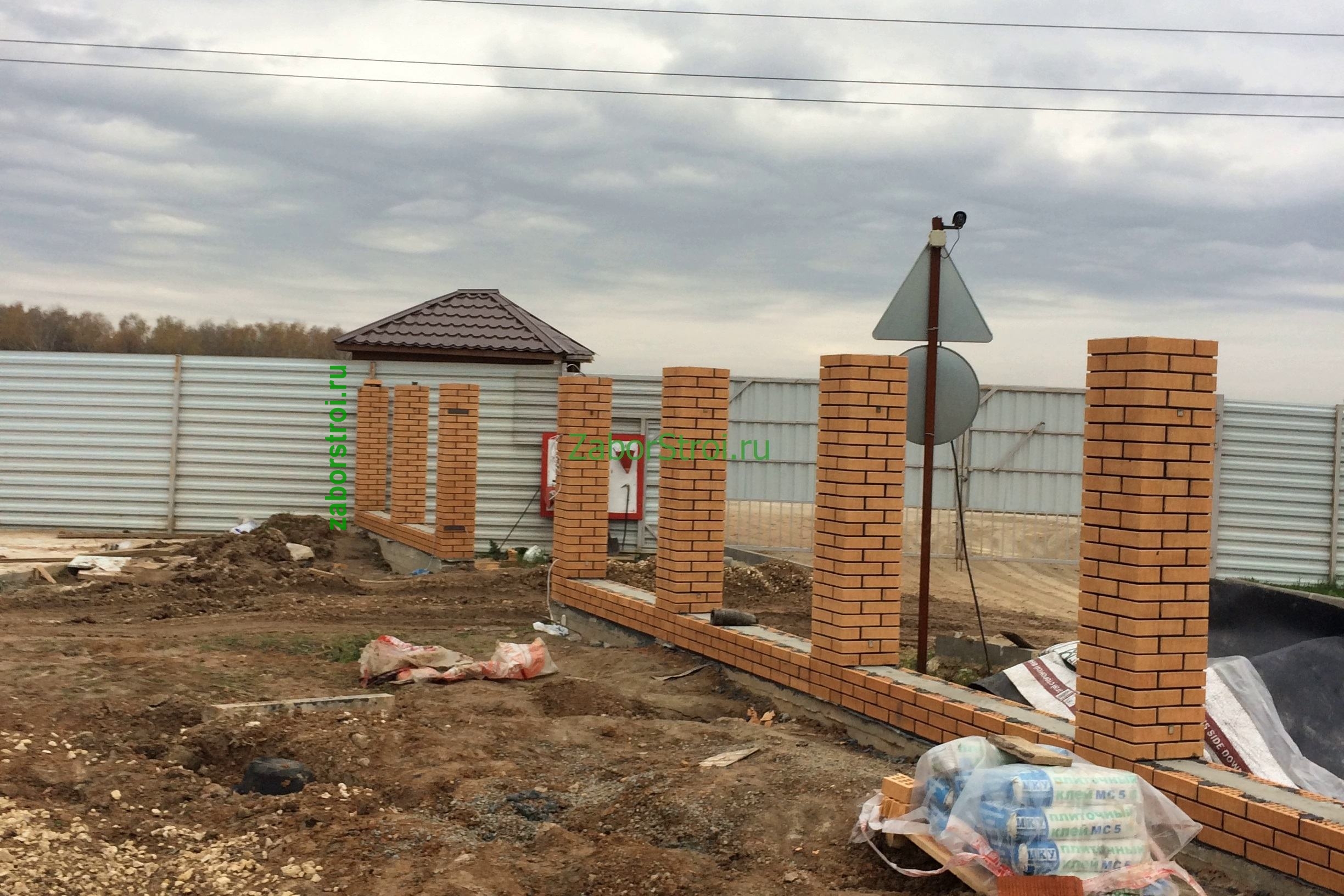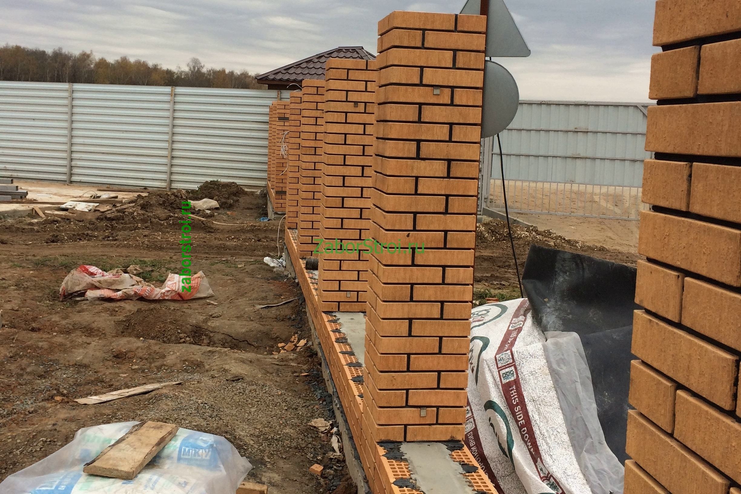 Заборы из профнастила с кирпичными столбами 12 соток