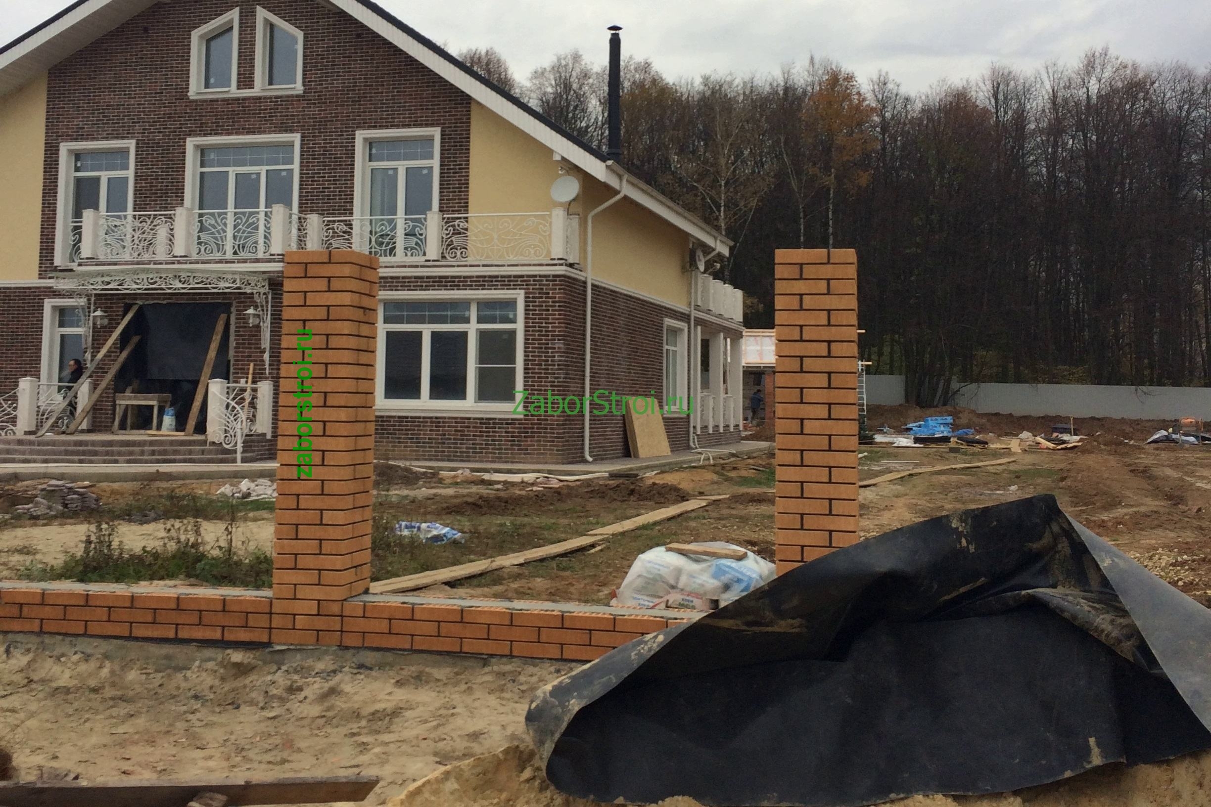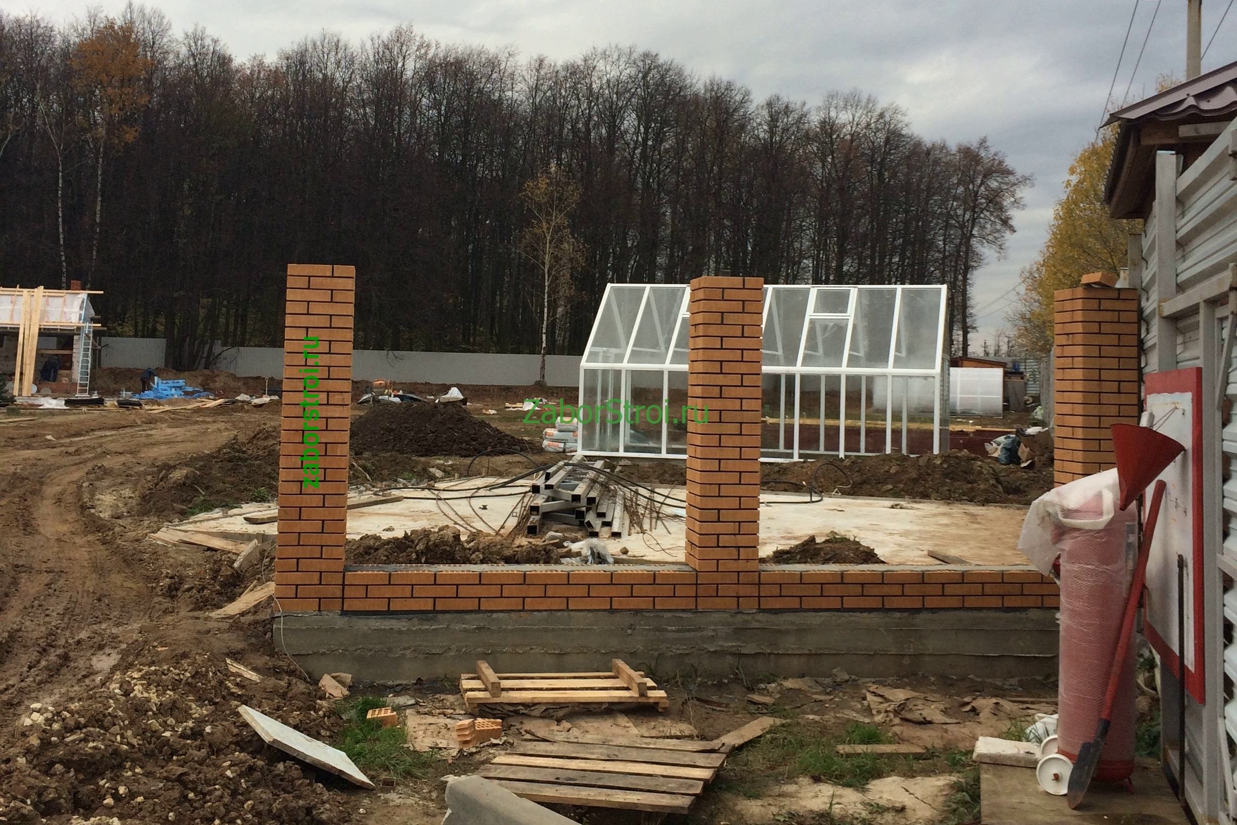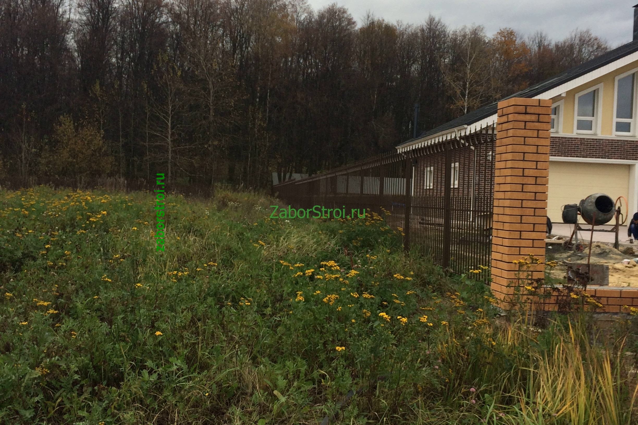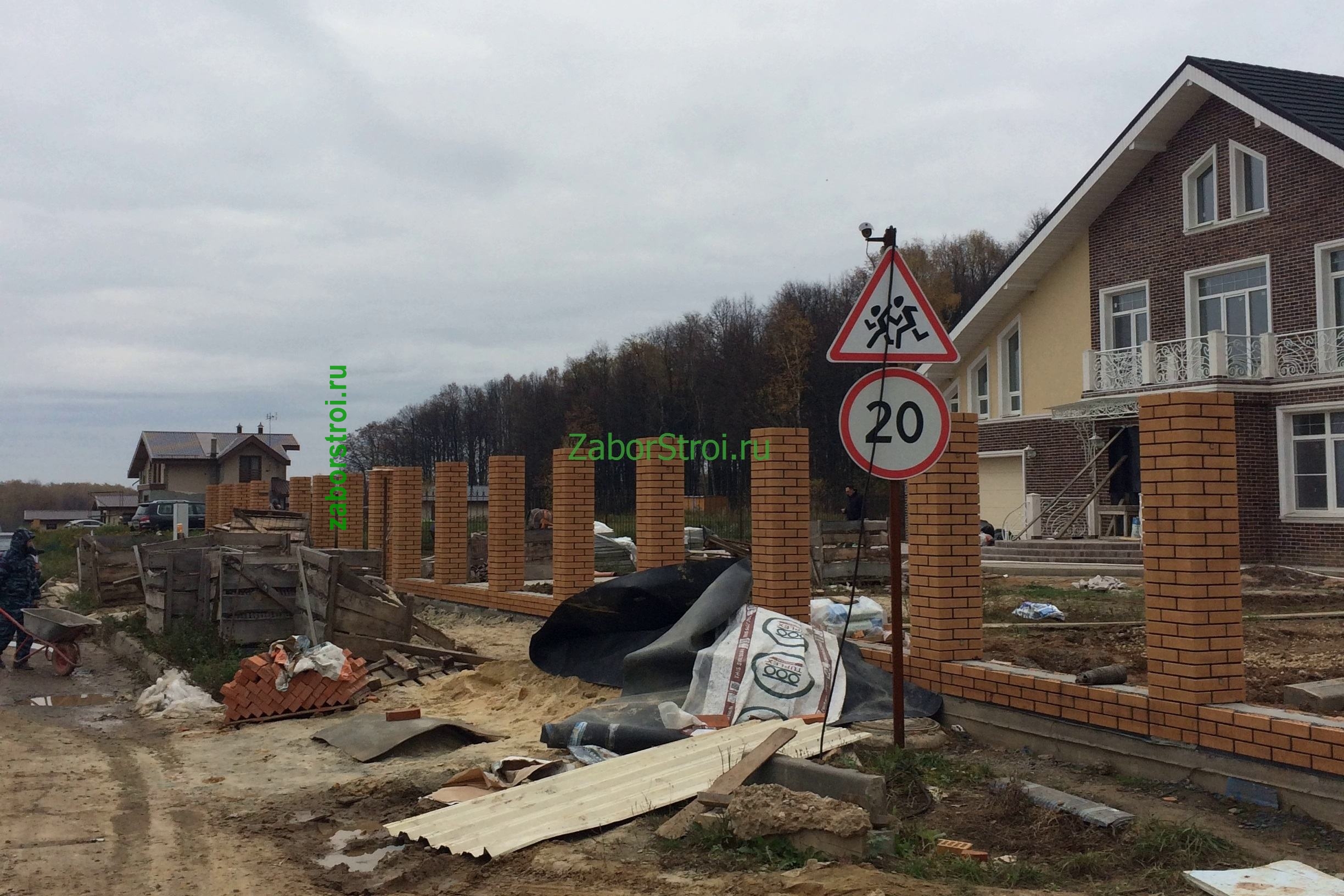 Заборы из профнастила с кирпичными столбами 12 соток