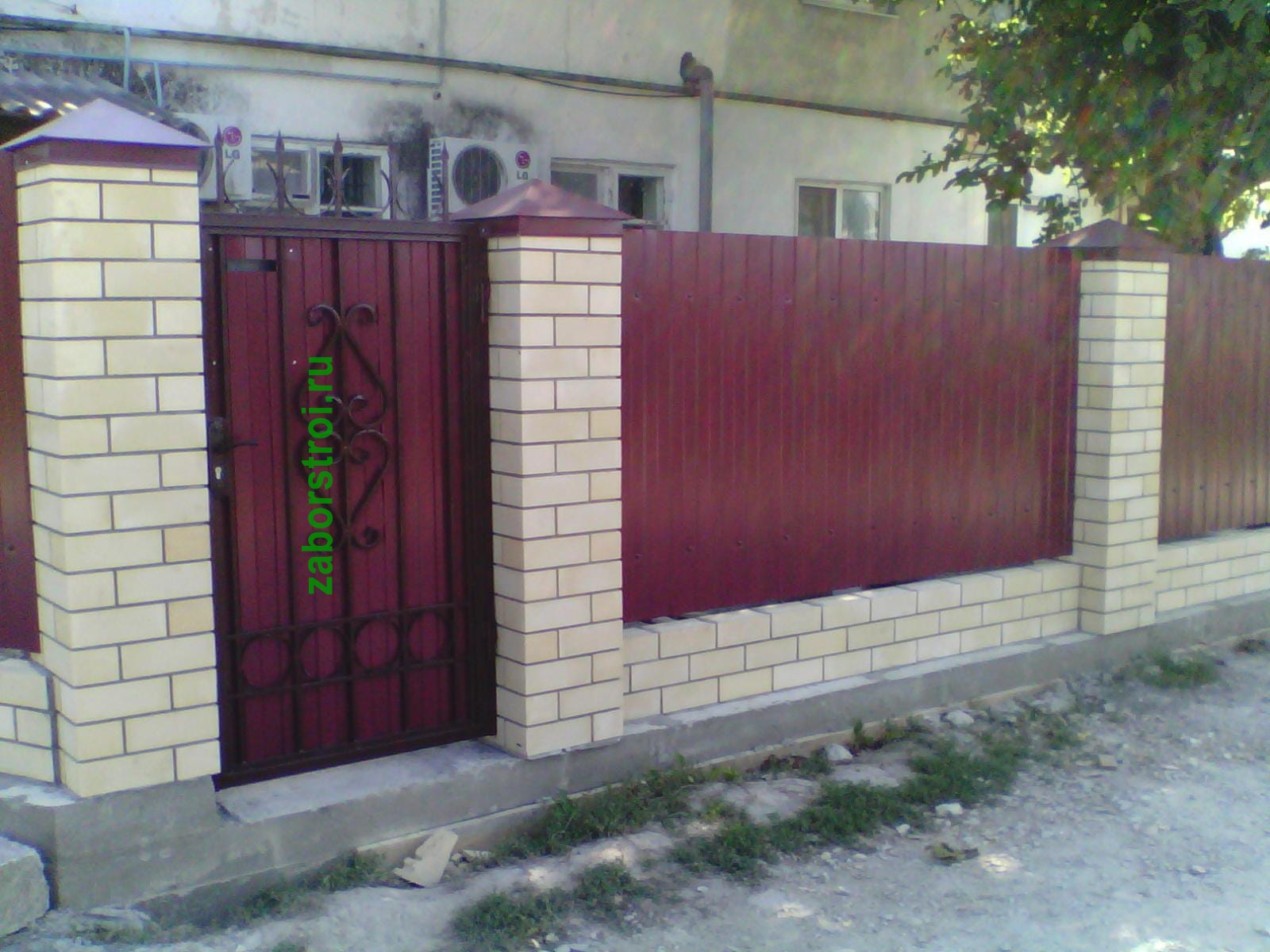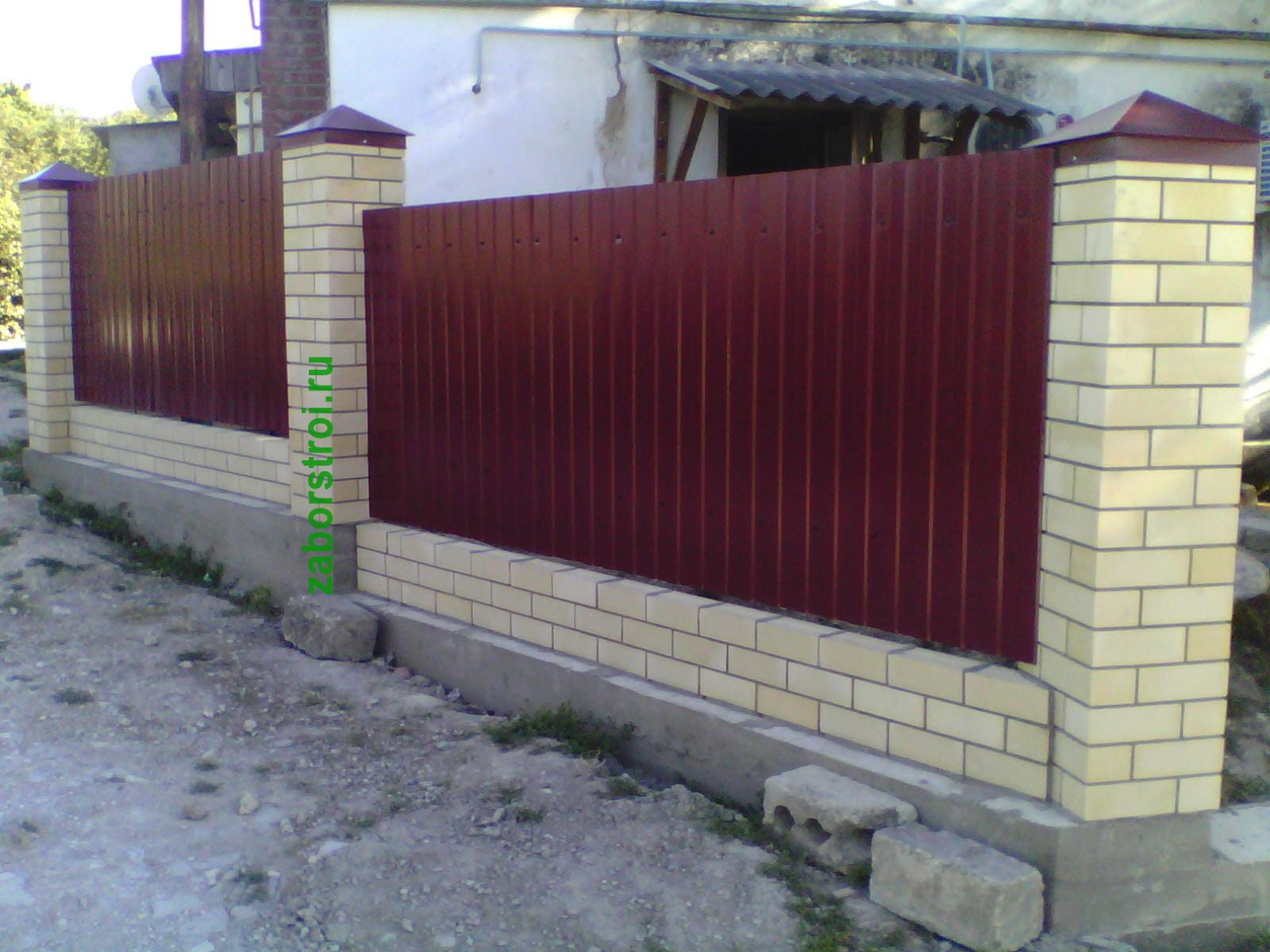 Заборы из профнастила с кирпичными столбами 161 метр